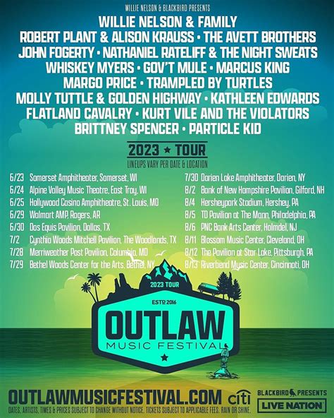 “the outlaw music festival tour has always been about family and friends coming together for a great day of music and fun, and with the amazing group of artists joining us, this year promises to. “the outlaw music festival tour has always been about family and friends coming together for a great day of music and fun,” nelson said. Their.